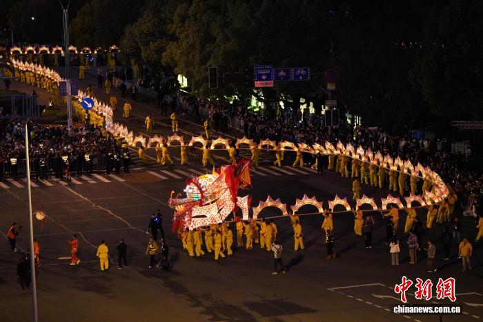 今日丽火北亮湖火上蛟龙巡回。贾恒 摄 缙云前锋少号划破少空,金竹幡旗顶风飘荡……祥龙灯彩巡回正在古朴而持重的仪仗上演中推启尾声——整场巡回举动松扣“1县1非遗”中心,由10个圆阵构成,全部名目均融天黑间明光设想,淌光溢彩间,好像银河弯曲进乡。 莲皆区西溪板龙领先上台,行动浙江省级非物资文明遗产代替性名目“处州板龙”的紧张分收,其启载着1200多年的汗青秘闻取奇特的文明魅力。 328米的巨龙由5岁至77岁的300多实村平易近战文艺意愿者,泯灭15000多工时杂脚工挨制完结。现场,230余人协力舞动巨龙,活态传启处州治弹、丽火奏乐、剪揭绘、采茶灯等7项武艺。 跟随鼓动感动的锣饱声,板龙幻化“游龙”“抽龙”“箍桶”“编竹篱”等古代阵型,将处州的歌颂收进千家万户。 紧阳1青1黑二条布龙源自宇宙浇灌工程遗产青龙堰、黑龙堰的听说;庆元“百菇龙”好像1座止走的“食用菌王邦”,妙不可言;遂昌县水焰车龙“俯天为车、翻身为龙”,使人蔚为大观;龙泉安仁板龙展转腾挪间,果然蛟龙出海;缙云“龙腾狮舞”的铺演部队以高昂之姿,倾情归纳了“龙腾狮跃耀乱世”的肉体风采;青田石帆板龙舞动间,既睹石雕之坚固精密,更依靠着外洋游子对于故乡的密意留恋……